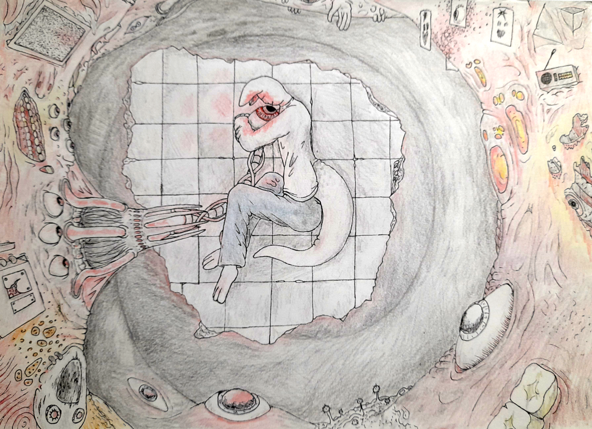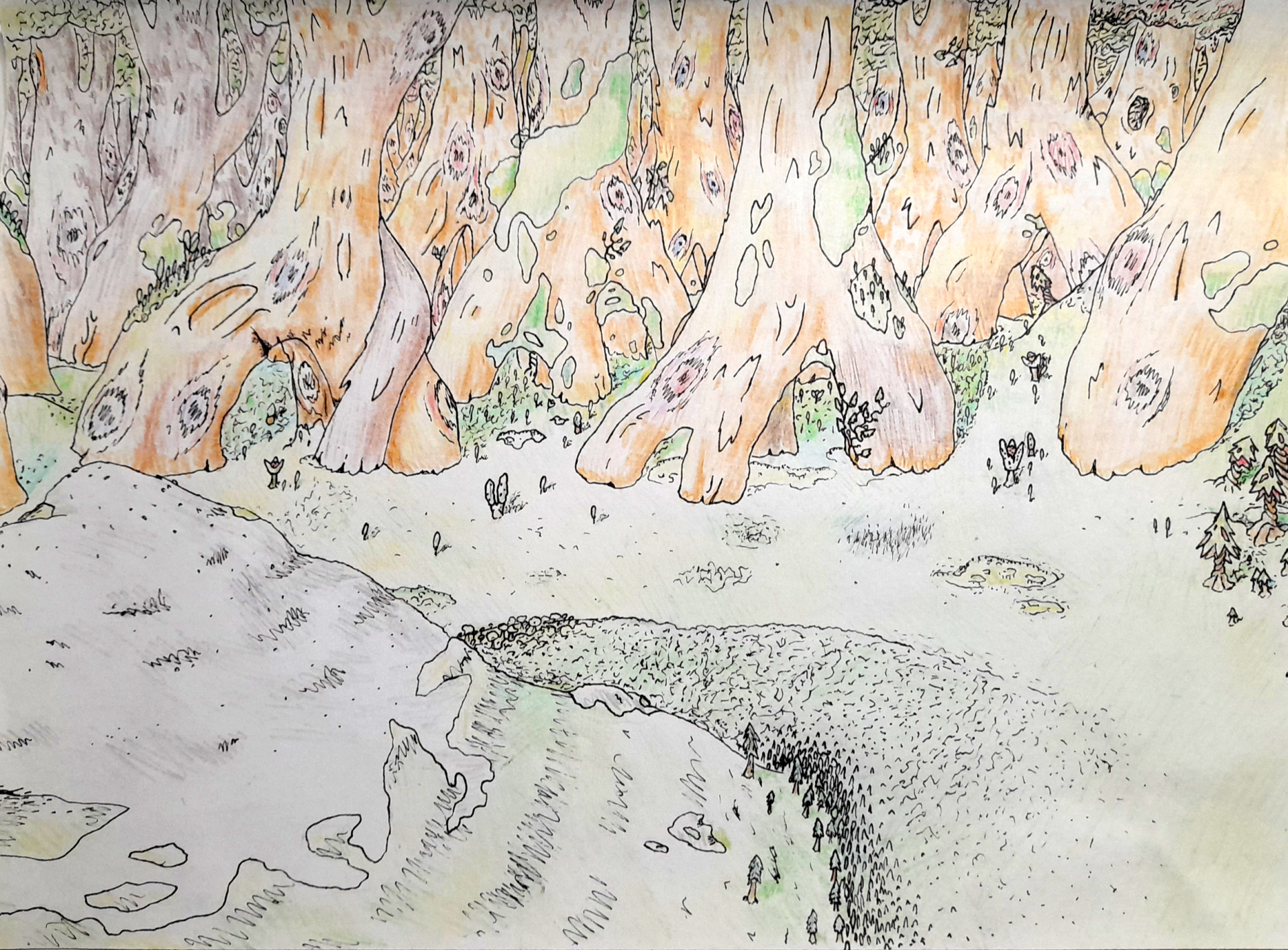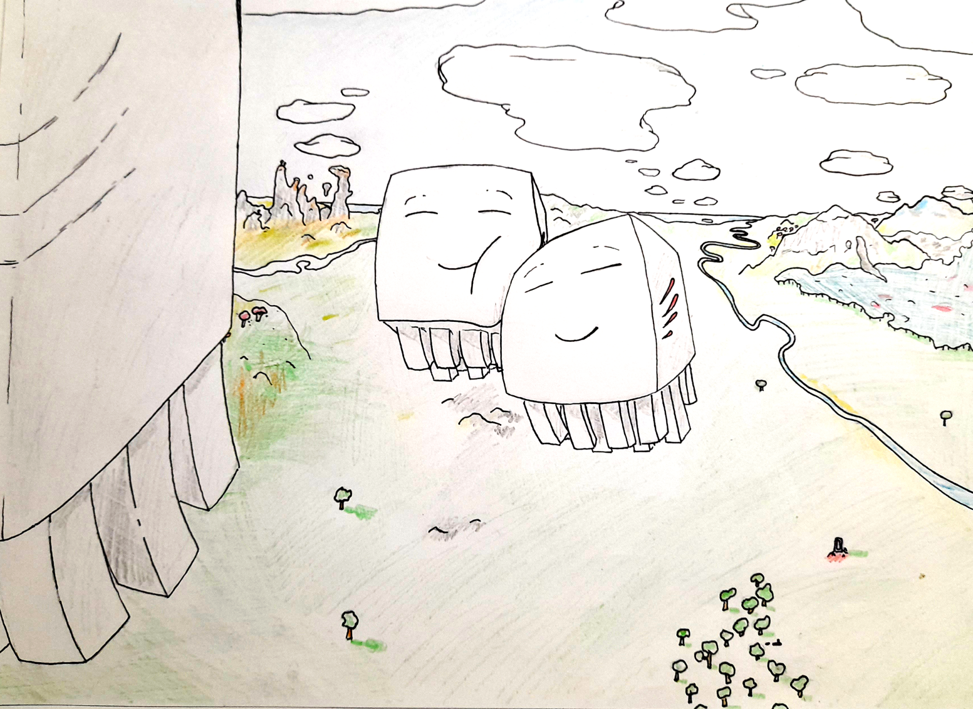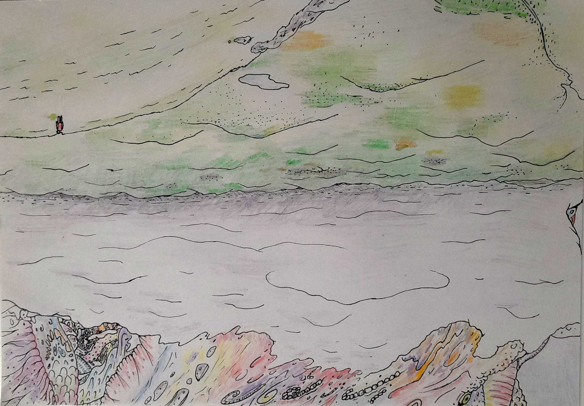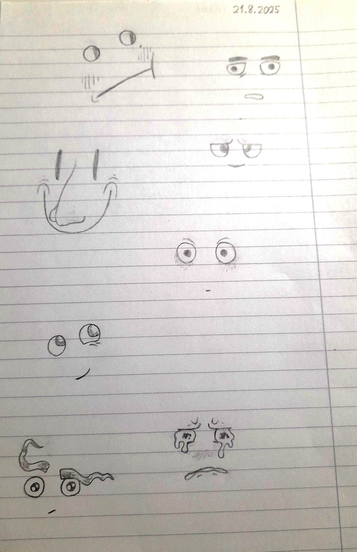 Aaron zeichnet bevorzugt mit Blei- und Buntstiften. Hier sind die ersten Bilder, die wir von ihm gesehen haben.
