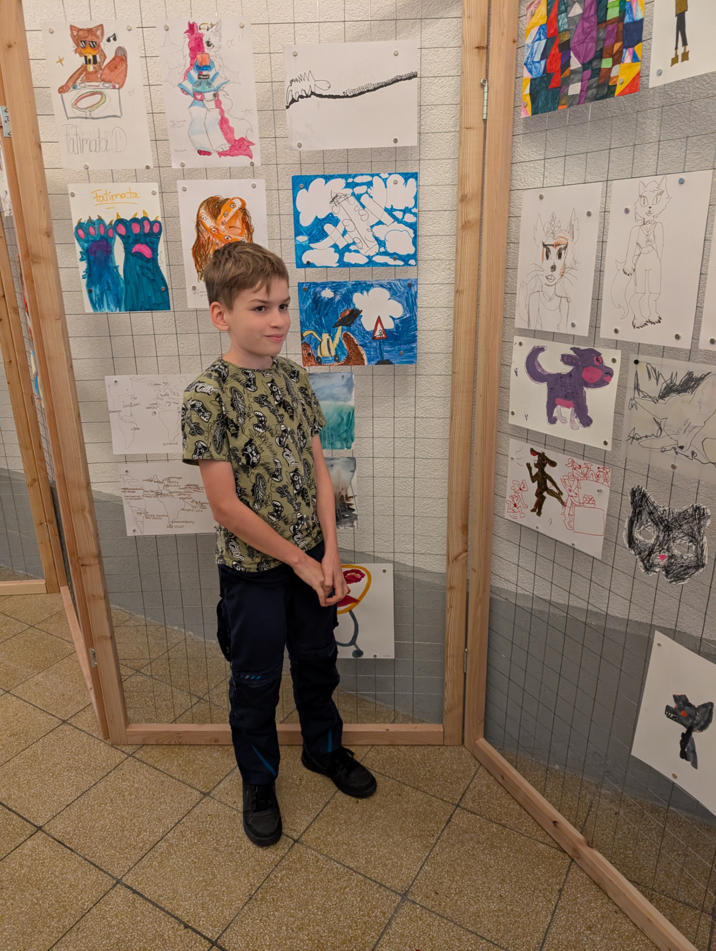 Die Ausstellungswand während der Durlach-Art 2025 im Durchgang der Regionalstelle des Autismuszentrums Bruchsal in Durlach