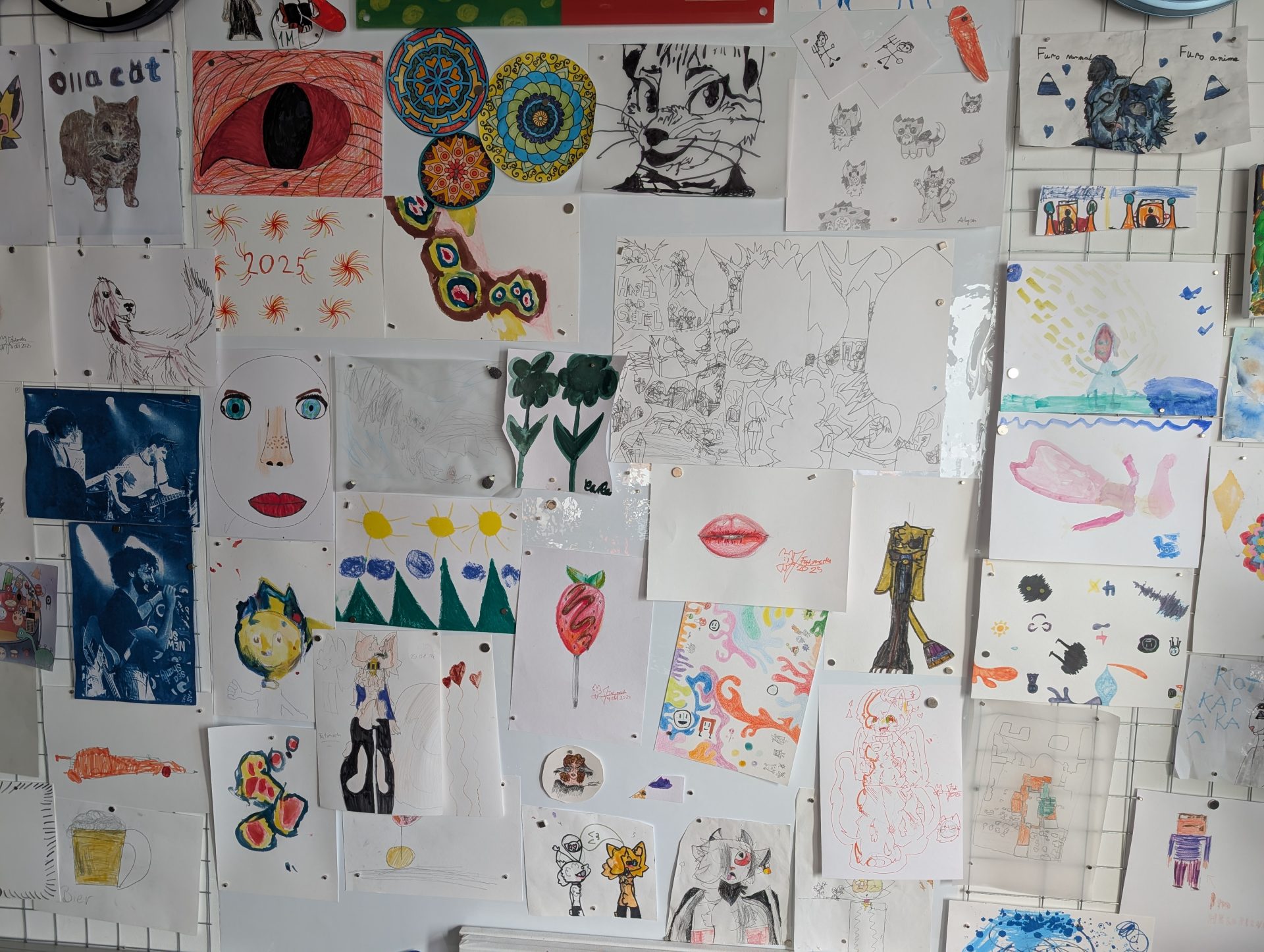 Die Wand mit den Bildern der teilnehmenden Kinder und Jugendlichen – jede*r darf sein Bild hier aufhängen und zeigen.