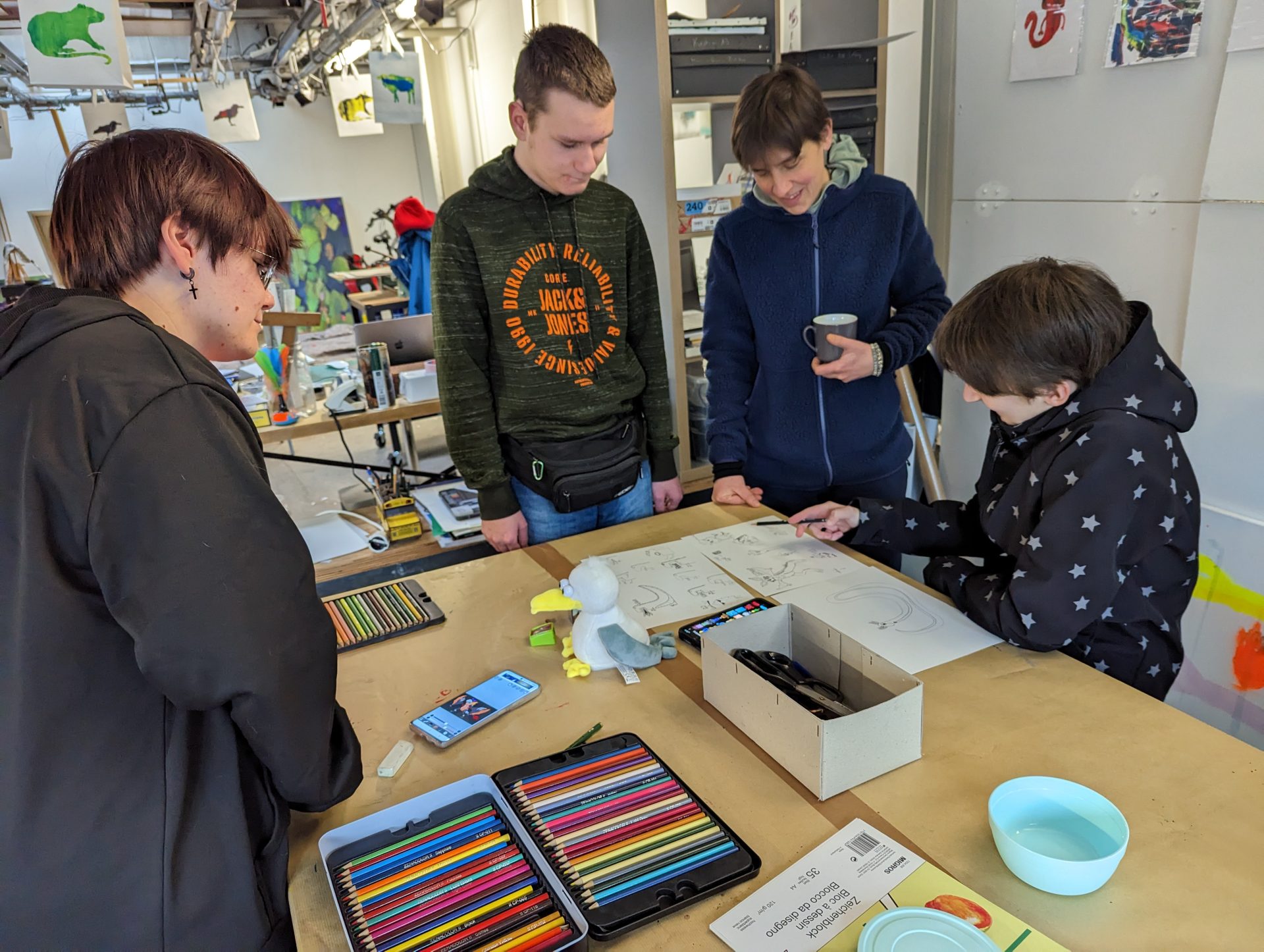 Je menr sie sich austauschen, desto entspannter wird die Werkstatt. Aus den Begleitern werden Teilnehmer mit eigenen Arbeiten.